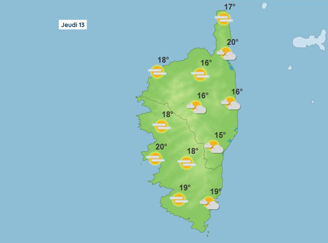 Météo pour ce jeudi 13 novembre 2025 en Corse