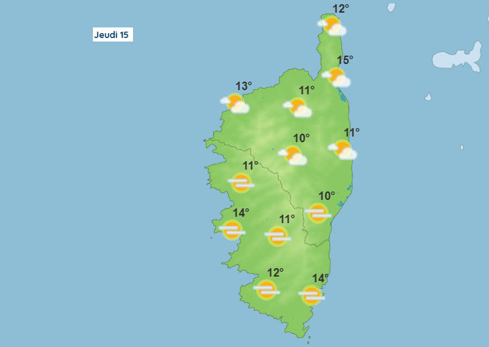 Météo pour ce jeudi 15 janvier 2026 en Corse