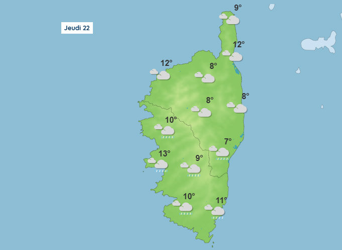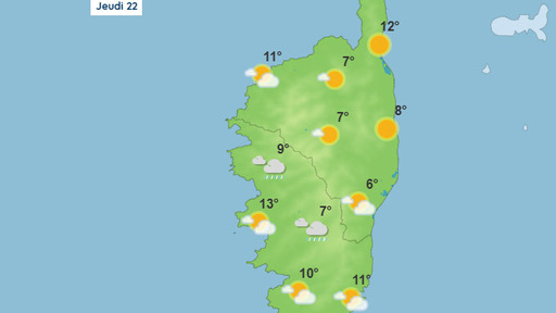 Météo pour ce jeudi 22 janvier 2026 en Corse