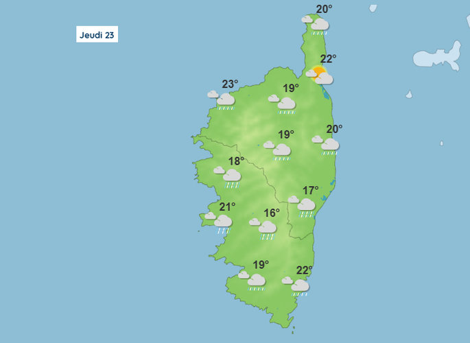 Météo pour ce jeudi 23 octobre 2025 en Corse