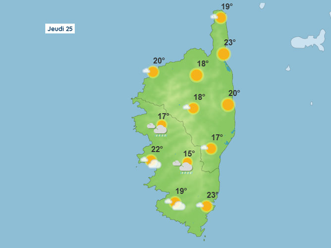 Météo pour ce jeudi 25 septembre 2025 en Corse