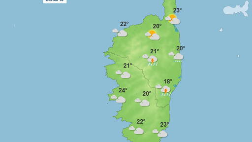Le ciel est très nuageux en Haute-Corse, avec un risque de développe de foyers orageux dans l'après-midi. Néanmoins, le risque d'averse reste faible et le soleil sera prédominant notamment sur le quart sud-est et le Cap Corse.