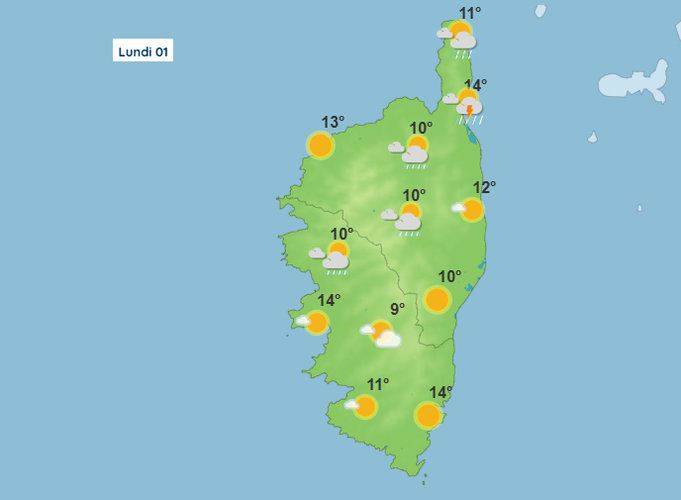 Météo pour ce lundi 1er décembre 2025 en Corse, jour de la saints Florence et Eloi.