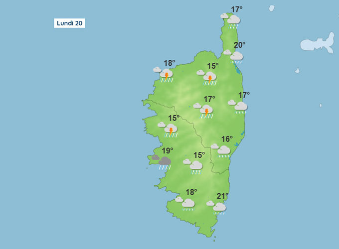 Météo pour ce lundi 20 octobre 2025 en Corse