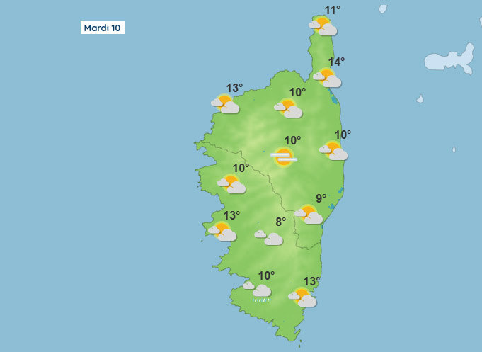 Météo pour ce mardi 10 février 2026 en Corse