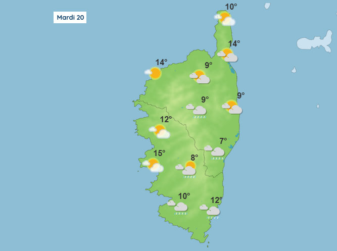 Météo pour ce mardi 20 janvier 2026 en Corse