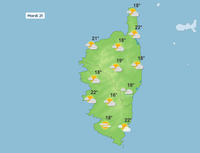 Météo pour ce mardi 21 octobre 2025 en Corse