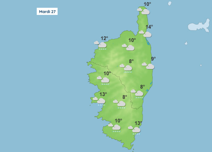 Météo pour ce mardi 27 janvier 2026 en Corse