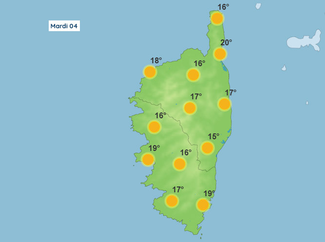 Météo pour ce mardi 4 novembre 2025 en Corse