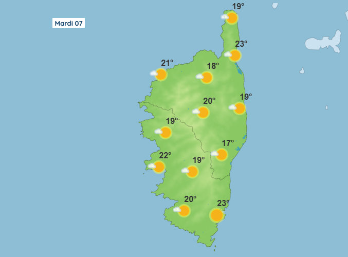 Météo pour ce mardi 7 octobre 2025 en Corse