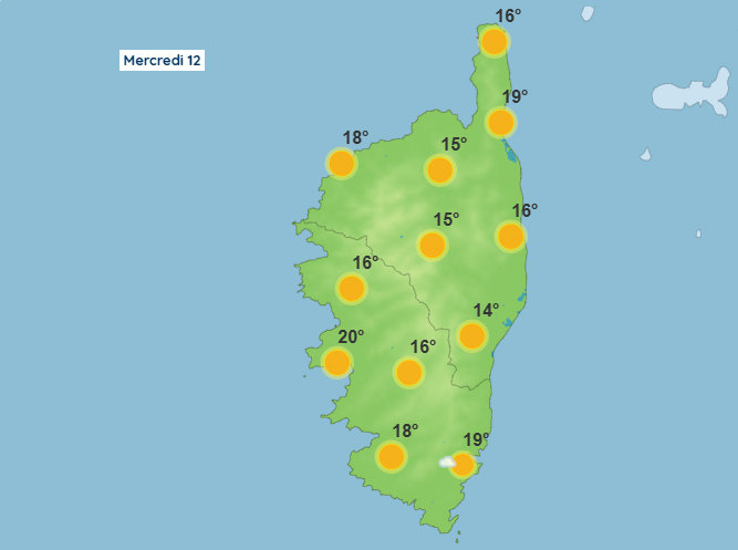 Météo pour ce mercredi 12 novembre 2025 en Corse