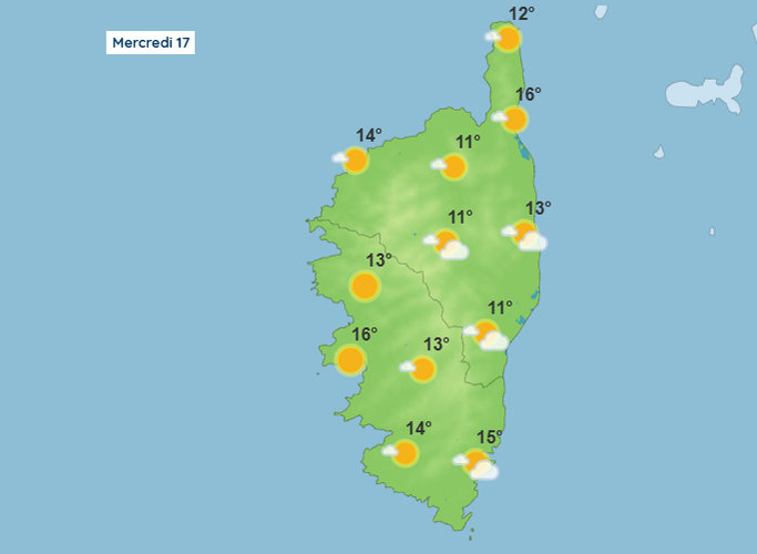 Météo pour ce mercredi 17 décembre 2025 en Corse