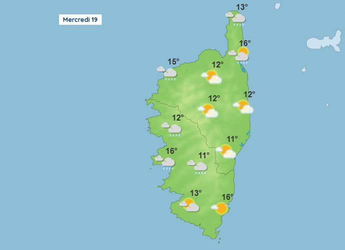 Météo pour ce mercredi 19 novembre 2025 en Corse