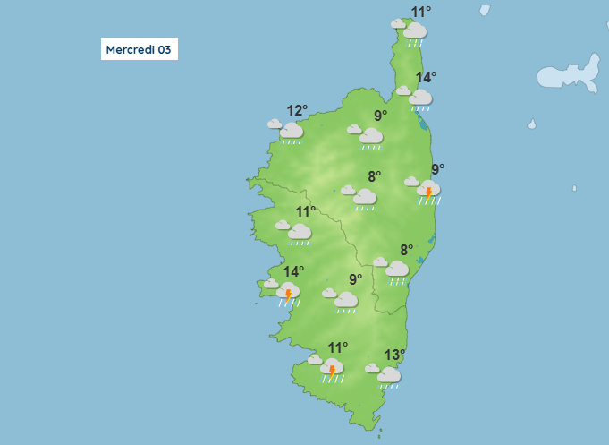 Météo pour ce mercredi 3 décembre 2025 en Corse.