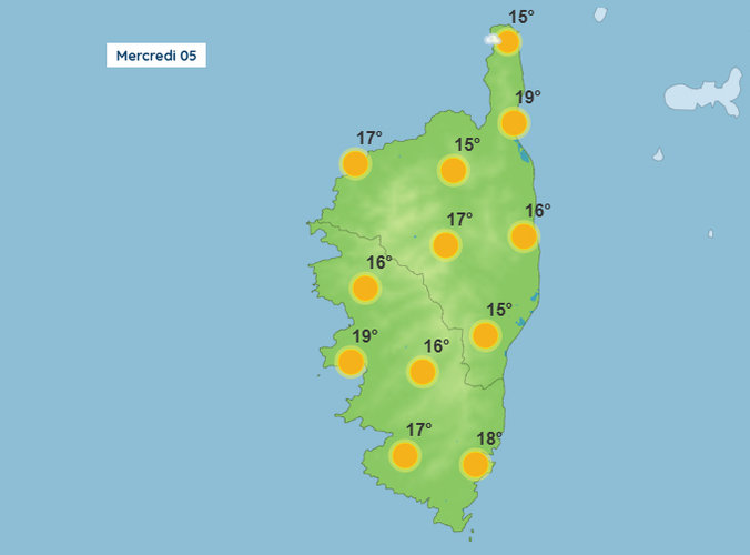 Météo pour ce mercredi 5 novembre 2025 en Corse