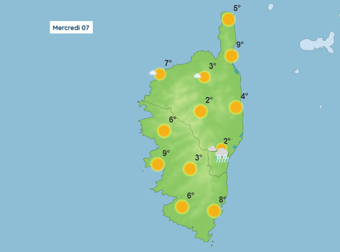 Météo pour ce mercredi 7 janvier 2026 en Corse