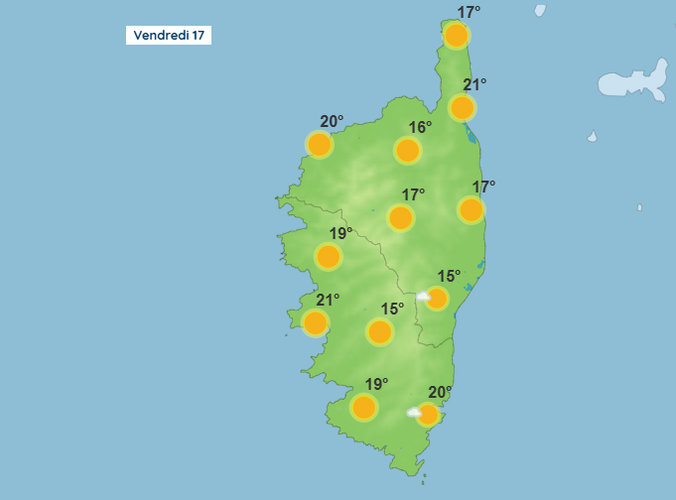 Météo pour ce vendredi 17 octobre 2025 en Corse