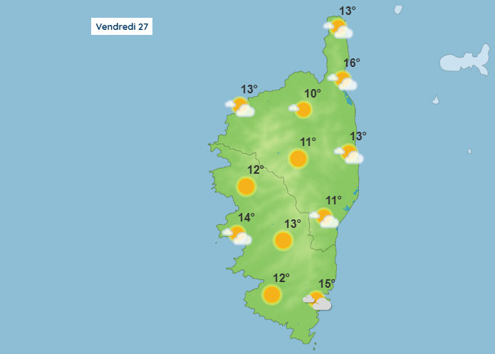 Météo pour ce vendredi 27 février 2026 en Corse.