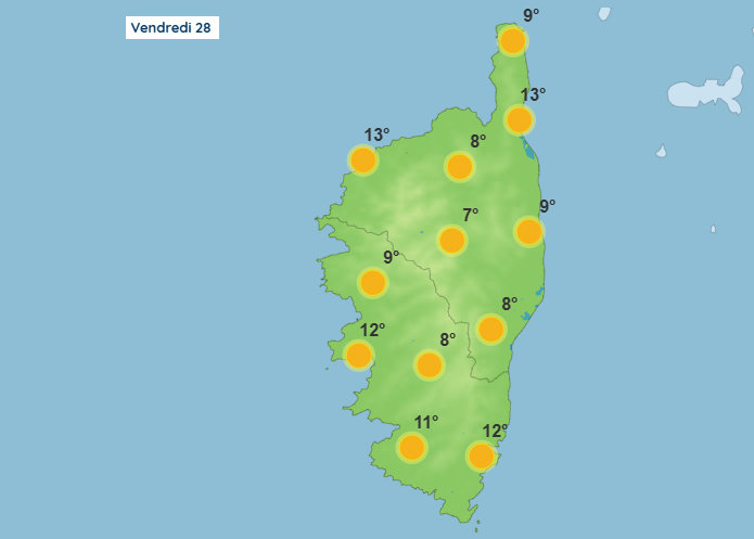 Météo pour ce vendredi 28 novembre 2025 en Corse