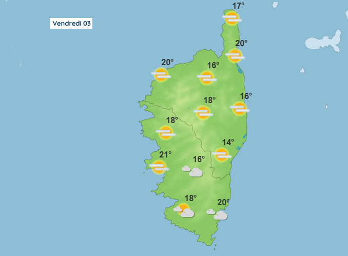 Météo pour ce vendredi 3 septembre 2025 en Corse
