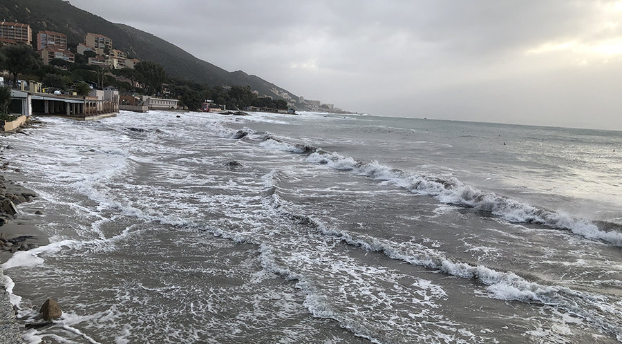 Du jeudi 19 février à partir de 17 h 00 au vendredi 20 février, de forts vents d’ouest génèrent des vagues de 5 à 5,50 m sur la façade ouest de la Corse. Les secteurs les plus exposés sont le golfe de Saone, le golfe de Portu et le golfe de Prupià.